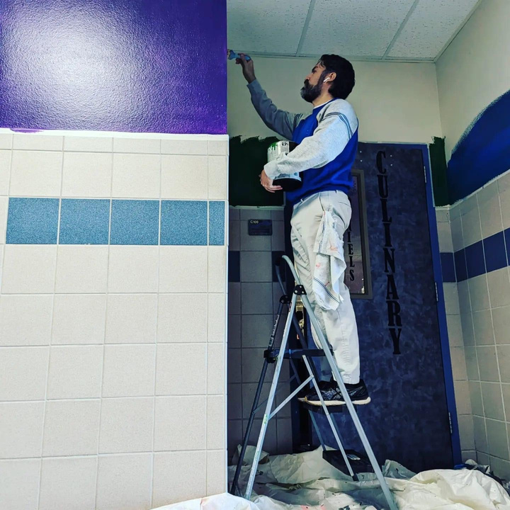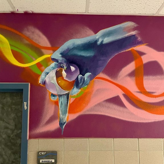 Returning to Lakeview H.S. to work on another wall has been a delight. The first mural project was designed around the hallway for their Culinary program. I decided to incorporate elements of "making" with a heavy emphasis on how hands are an integral part of the process of preparing dishes.