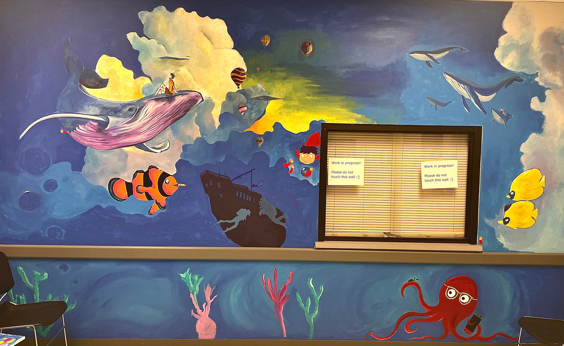 Our return to Lakeview is to finish the other side of the hallway. This time we are designing a mural around the idea of connection and how meals connect us all.